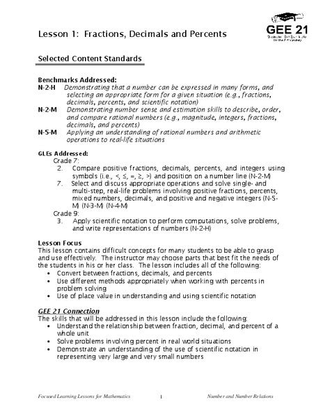 Read Online fraction decimals percents lesson plans Hardcover Open Library